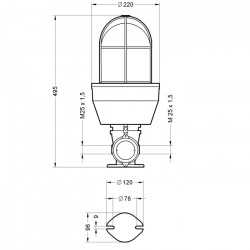 Lámpara de impresión de explosión de advertencia giratoria en un tamaño grande con una bombilla de filamento (EX 080 RA) o bombilla halógena H1 (EX080 RA H). Diseñado para su uso en zonas 1, 2, 21 y 22 y a -25 ° C a + 50 ° C. La carcasa está hecha de aleación de aluminio sin cobre, lente hecha de vidrio de borosilicato. La lámpara está equipada con una base plana.