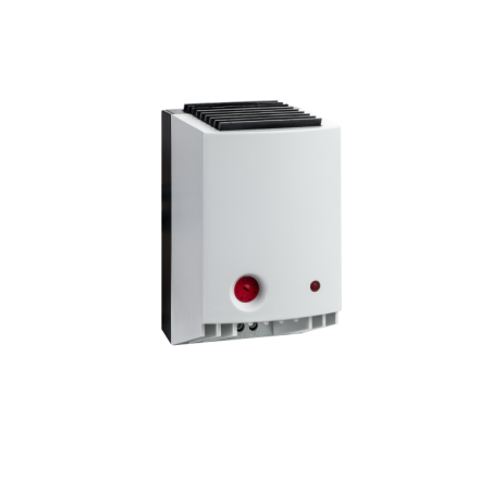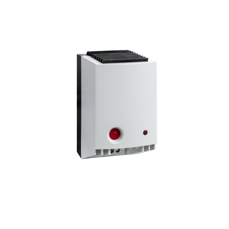 Този нагревател с PTC елемент предотвратява замръзване и кондензация в електрическата кутия и корпуса. Вграденият вентилатор допълнително подобрява ефекта на отопление чрез конвекция. Интегрираният регулируем термостат спестява място в приложението.