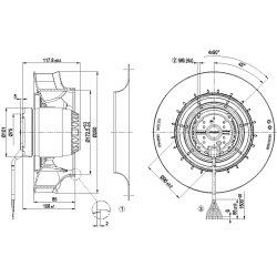 R2D250-RC10-11 AC центробежен вентилатор 400/400/400/400/480/480V 215/160/325/195/355/240W
