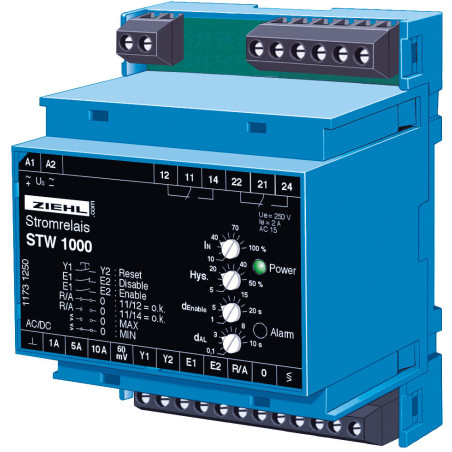 Proudová relé ZIEHL STW1000 mají 4 měřicí rozsahy. Monitorují většinu běžných střídavých a stejnosměrných proudů na nadproud nebo podproud. Proudy do 10 A lze připojit přímo k STW. Pro vyšší proudy lze připojit externí transformátory (na vstupy 1/5 A) nebo Shunty (vstup 60 mV).