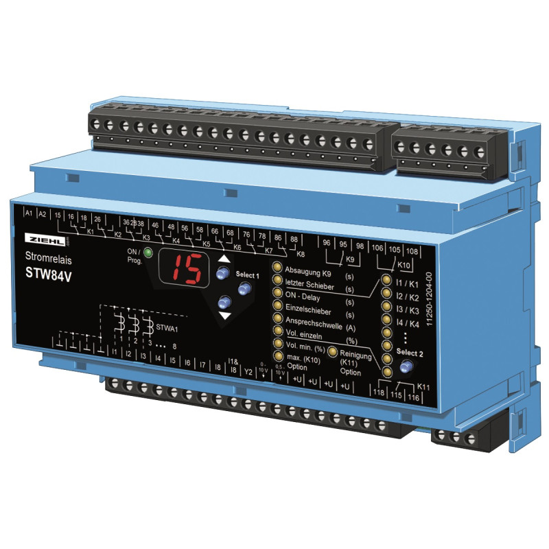Proudové relé STW84V hlídá až 8 střídavých sad na průtoku ano/ne. Vstupy mohou analyzovat signály proudových transformátorů typu STWA1(H) nebo bezpotenciálových kontaktů.