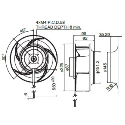 F225TB-092-D0730 DC radiální ventilátor 48V 48W