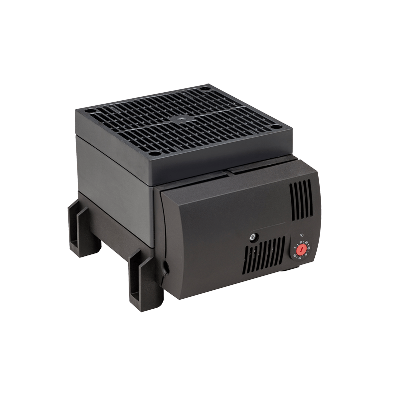 Tento vysoce výkonný ventilátorový ohřívač je navržen tak, aby rovnoměrně reguloval teplotu v krytech a elektrických skříních a chránil tak před škodlivou kondenzací. K dispozici jsou verze s vestavěným termostatem. Technologie ohřevu PTC zajišťuje dynamickou odezvu. Bezpečné použití díky plastovému krytu citlivému na dotek.