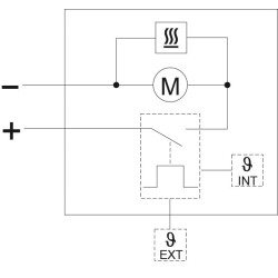 Tato odporová vložka s ventilátorem je určena pro připojení ke stejnosměrnému napájení. Volitelně s nastavitelným integrovaným termostatem nebo hygrostatem. Příslušenství: externí senzor. Montáž: Připevňuje se k základně krytu pomocí šroubů.