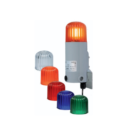 Signalleuchte für den Innen- und Außenbereich. 360°-Sichtbarkeit, robustes Kunststoffgehäuse, Wandhalterung aus Stahl und Druckausgleichsventil zur Vermeidung von Kondensation.