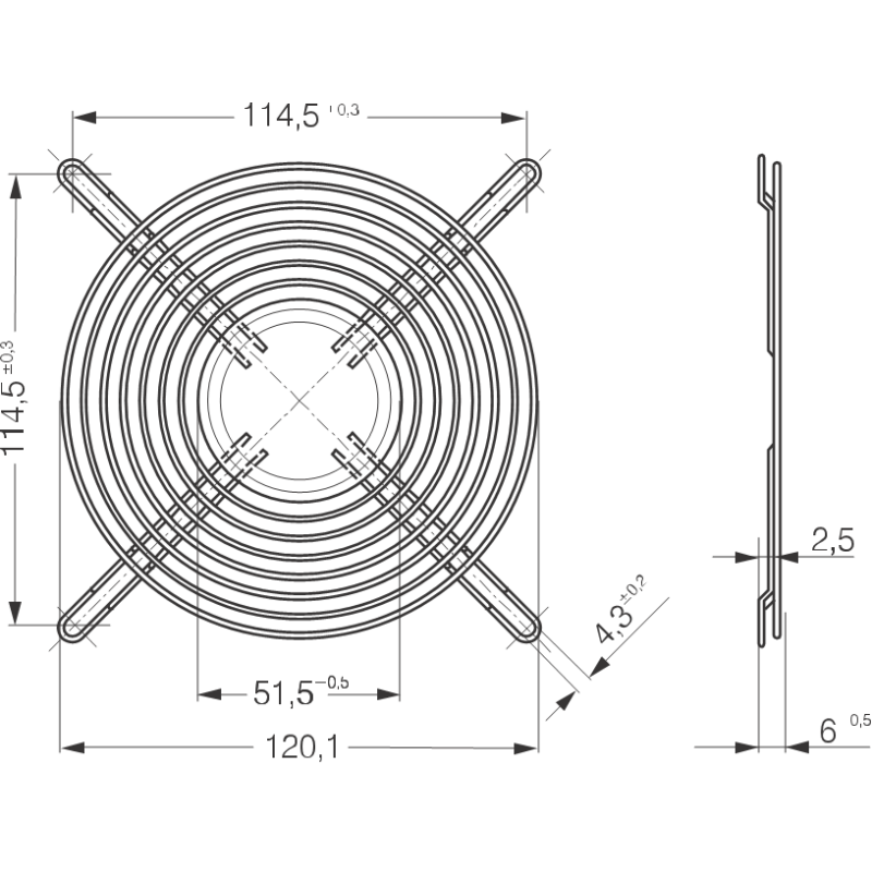 Lüftergitter passend für Lüfter mit den Maßen 127 x 127 mm