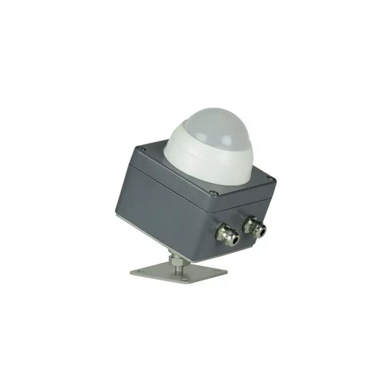 Industrieller Präsenzmelder für explosionsgefährdete Bereiche 2/22 (Gas/Staub). Er erfasst die Bewegung thermischer Objekte mittels Passiv-Infrarot, verfügt über einen weiten Erfassungswinkel von 360° und eine hohe Reichweite. Das Aluminiumgehäuse (RAL 7015 lackiert) mit vernickelten Kabelverschraubungen und einer Edelstahlhalterung gewährleistet hohe Umweltbeständigkeit IP65. Ideal für die automatische Steuerung von Beleuchtung und Zusatzgeräten.
