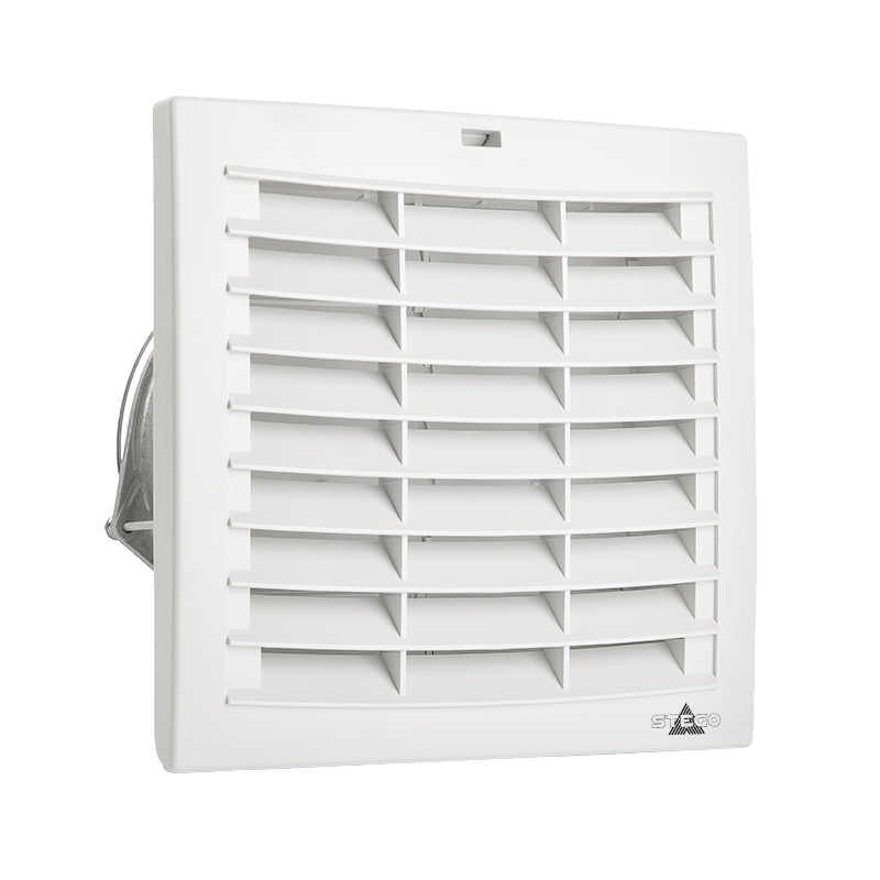 FPO-Filterlüfter Größe 3 (176 x 176 mm) zur Klimatisierung von Schaltschränken und Gehäusen. Ausführung: FPO – Luftstromrichtung AUS (Ausführung: saugend). Der optimale Filterlüfter für Schaltschränke: Filterfan Plus saugt erwärmte Luft aus dem Schaltschrank nach außen ab. Kühlere Außenluft gelangt durch den Eingangsfilter in den Schaltschrank. Dieser Luftstrom schützt die elektrischen Komponenten.