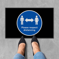 Lose Fußmatten zur Förderung der Einhaltung von Abstandsregeln, erhältlich in Standardgrößen und -mustern sowie als Sonderanfertigungen.