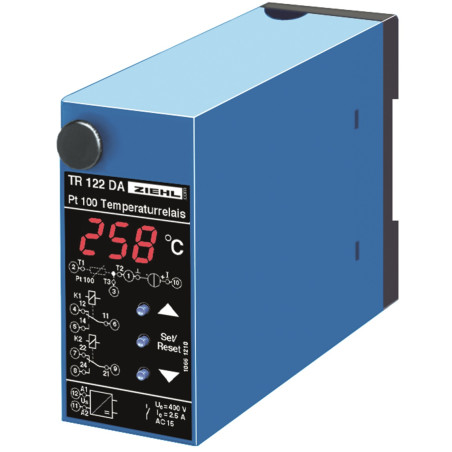 Switching-Relays Typs TR 122 D(A) monitor the input-signal for 2 limits. The TR 122 DA transduces the measured temperature/resistance to a proportional DC-current.
