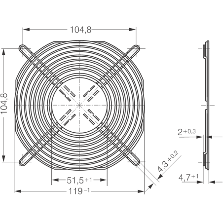 Fan guard suitable for fans measuring 119 x 119 mm