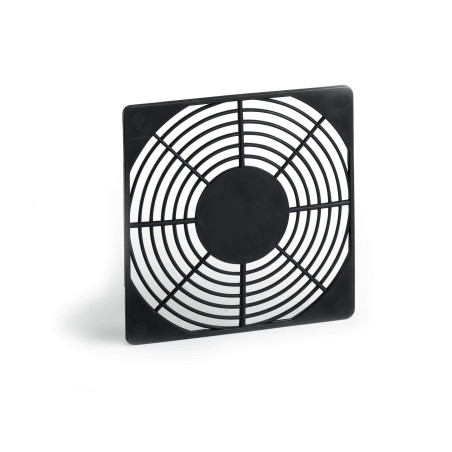 Plastic fan guards should be used with compact fans to prevent accidental contact with moving parts and help protect valuable components. These guards are square in shape and made of self-extinguishing ABS/PC alloy. They are available in a standard black RAL 9005 color.