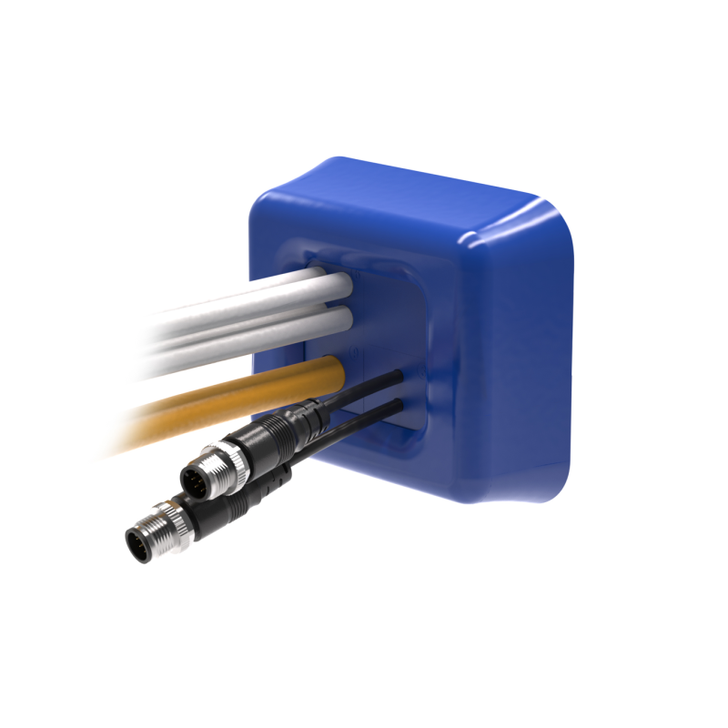 The DES Q CLEAN divisible frame is composed of the well-known DES Q divisible frame and an FDA PC mask, which is secured to the frame by overmolded inserts. Therefore, the system with the grommets installed, it is not just a color difference from traditional solutions, but a device that meets Hygienic design requirements for food machinery.