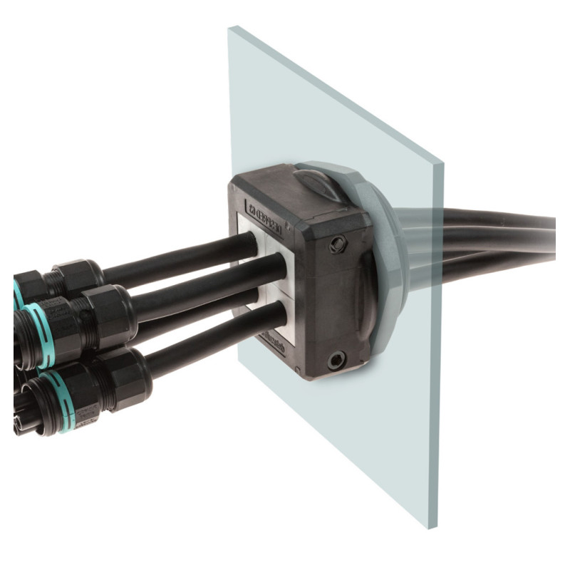 The DESPRED series allows to cross cabinet walls and switchboards with cables with connectors up to diameter of 34mm. Multiple grommets can also be used to increase the number of cables.