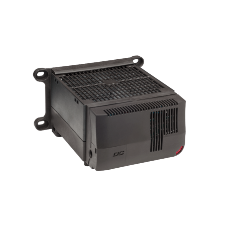 This resistive insert with a fan is designed for connection to a DC power supply. Optionally with an adjustable integrated thermostat or humidistat. Accessories: external sensor. Mounting type: rail or screw mounting.