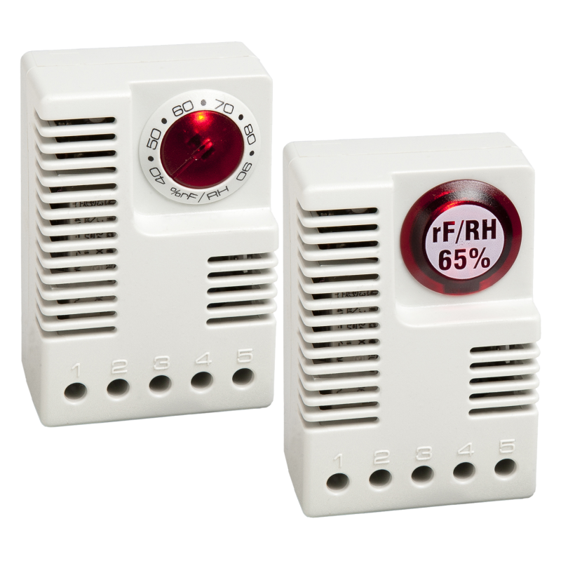 The hygrostat is used to prevent condensation and monitors the relative humidity in electrical enclosures and housings. When the set value is reached, the heating is activated and the integrated LED illuminates.