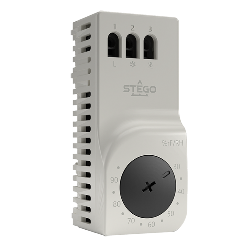 The hygrostat is used to prevent condensation and regulates the operation of the heating and fans. From a critical relative humidity of 65%, the temperature is increased to raise the dew point.