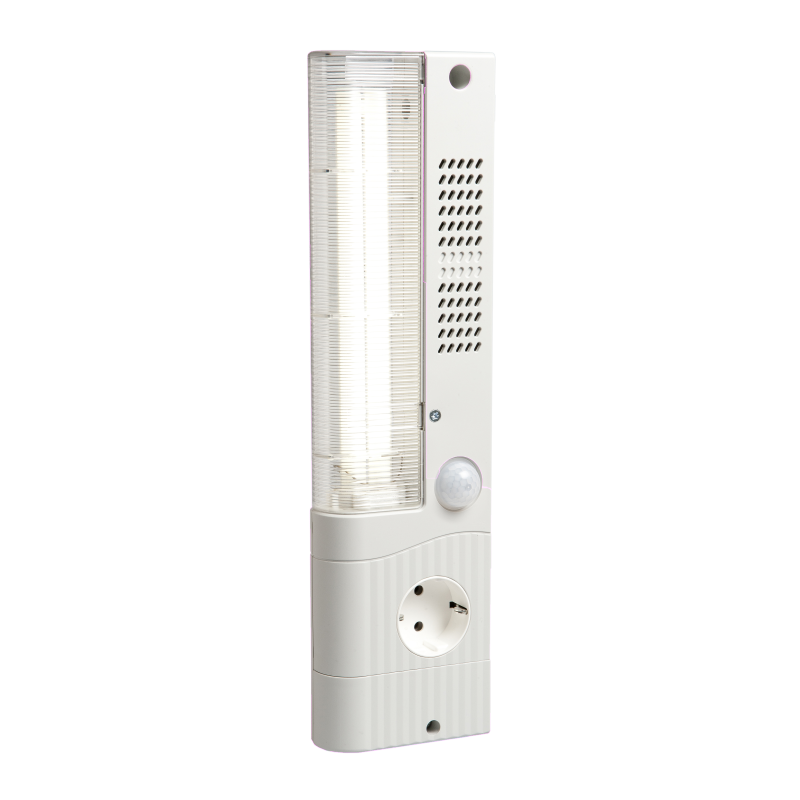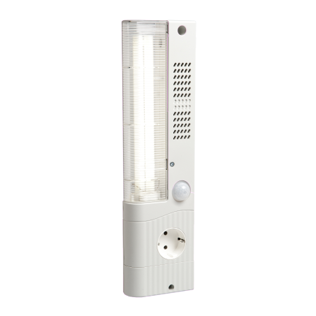 The Slimline electrical enclosure light with PIR motion detector uses a proven energy-saving lamp as its light source. It emits a luminous flux of 900 lumens, ensuring safe illumination of electrical cabinets and enclosures. The electronic ballast and optional power socket are integrated into the flat lamp housing.