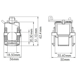 The split core current transformer KBR18S is especially suitable for being subsequently mounted in existing facilities. With its primary 60 A it matches perfectly the 63 A with which domestic connections are usually fused. The secondary 1 A are connected to EFR. The inputs of the EFR are preset for this value. A clip for mounting on DIN-rail is included.