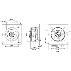 • Fan type EC single-inlet centrifugal fan with mounting panel