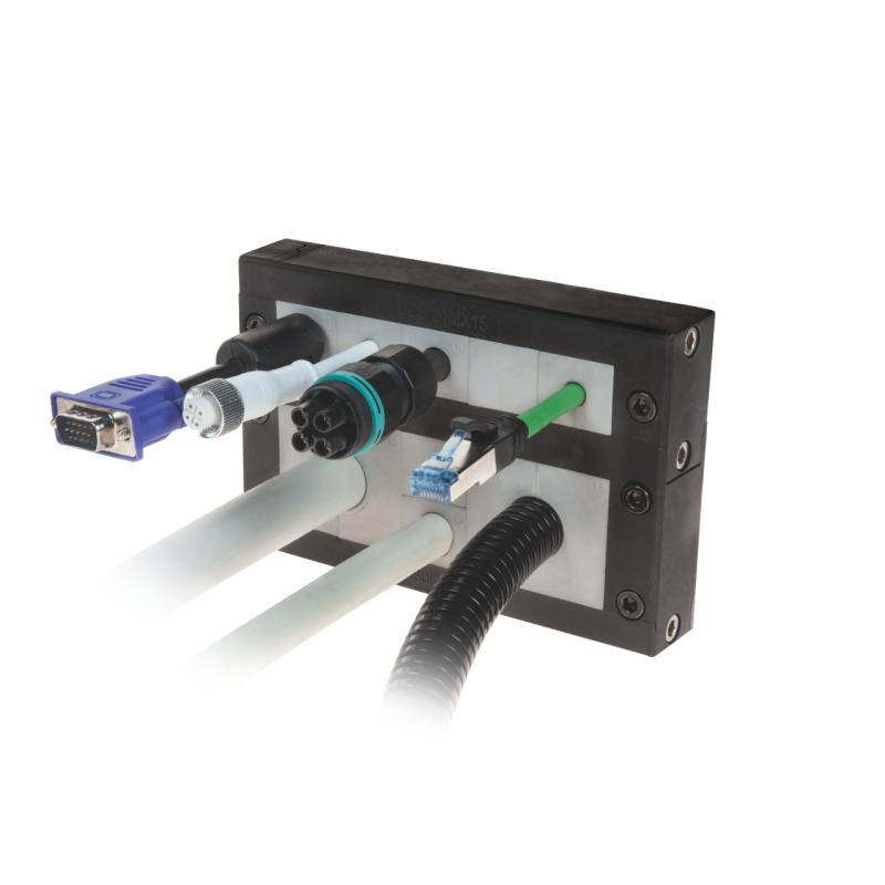 DES 24MX15 series divisible frames can use 15 small SPP grommets or 2 big SPG and 7 small SPP grommets.