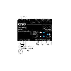 Dans un moteur à courant alternatif (charge inductive), le courant suit le déphasage. Si la charge diminue, il augmente de sorte que le facteur de puissance (cosfi) diminue. Ce changement de déphasage est un indicateur de la variation de la charge sur le moteur. Le moniteur de charge moteur COSFI 100 V convient aux signaux de courant alternatif sinusoïdaux.