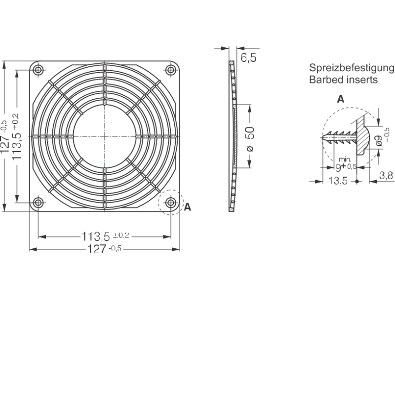 LZ33-2 - Capot de ventilateur - 127 x 127 mm