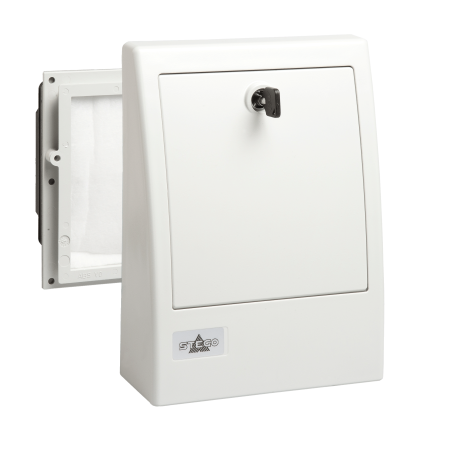 Le ventilateur avec filtre externe est utilisé dans les boîtiers et enceintes extérieurs où l'air chaud doit être évacué en raison d'un développement thermique accru (rayonnement solaire, déperdition de chaleur du système). Le matériau du boîtier est très résistant aux intempéries et aux rayons UV. Pour nettoyer ou remplacer le filtre, il suffit d'ouvrir le volet verrouillable du couvercle extérieur ; il n'est pas nécessaire d'ouvrir le boîtier (risque de sécurité).