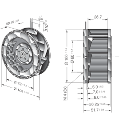 Ventilateur radial CC RER 101-36/18 NHH 48 V 19,4 W