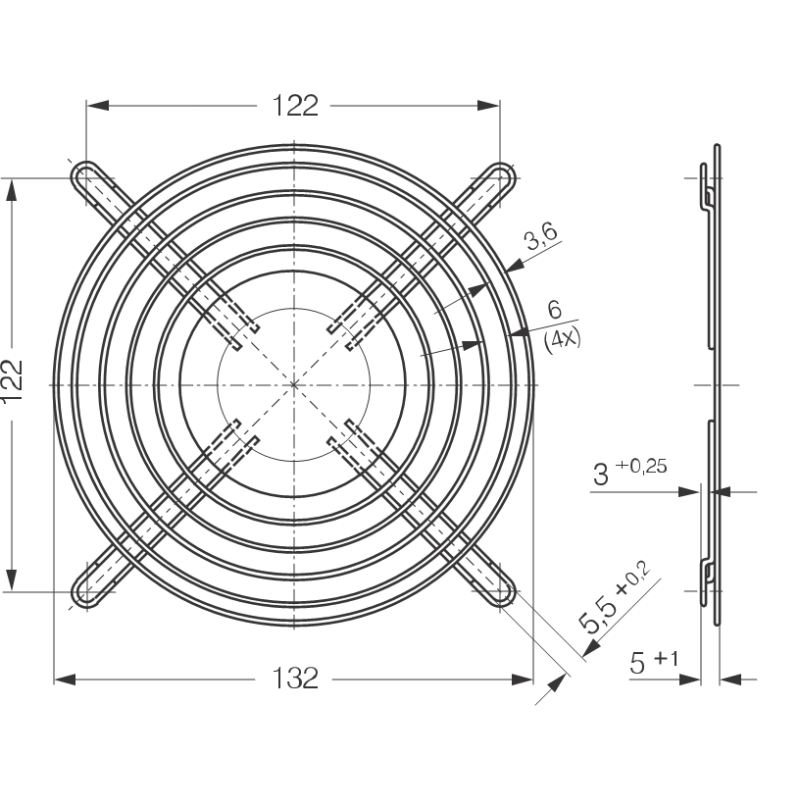 Ventilátorvédő 135 x 135 mm méretű ventilátorokhoz