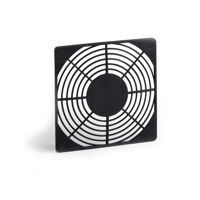 A kompakt ventilátorokhoz műanyag ventilátorvédőket kell használni, hogy megakadályozzák a mozgó alkatrészek véletlenszerű érintkezését, és segítsenek megvédeni az értékes alkatrészeket. Ezek a védőburkolatok négyzet alakúak és önkioltó ABS/PC ötvözetből készülnek. Normál fekete RAL 9005 színben kaphatók.