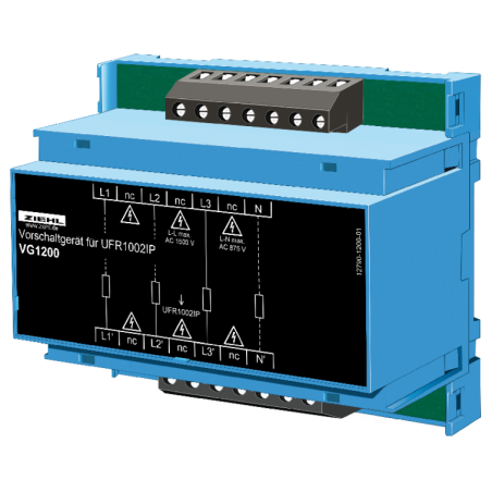Ahhoz, hogy a hálózat és a rendszervédelem figyelni tudja ezt a nagy feszültséget, csökkenteni kell. Ez általában feszültségátalakítókkal történik. A VG1200 csatolóeszközzel egy ohmos feszültségosztó áll rendelkezésre, amely ezt a feladatot látja el. A VG1200 csatolóeszközzel együtt az UFR1002IP akár 1200 V feszültséget is képes mérni. Az UFR1002IP kijelzője skálázható. Ez azt jelenti, hogy a VG1200 bemenetén lévő feszültségek megjelennek, és ennek megfelelően vannak beállítva a túl- és alulfeszültség elleni védelem határértékei. Mindkét eszköz együttesen megfelel a VDE-AR-N 4110 követelményeinek (a középfeszültségű hálózatba betáplálás).