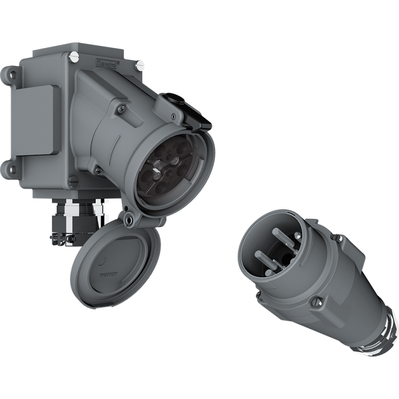 This high-temperature DS plug and socket is approved for normal operation at continuous ambient temperatures up to 240°C. Therefore, the connector can be used to power electrical devices located near intense heat sources: machinery, industrial installations, steel mills, metallurgical plants, and other facilities subject to extreme heat conditions. This ensures a reliable electrical connection with 125 A and 440 V ratings, even in the harshest environments.