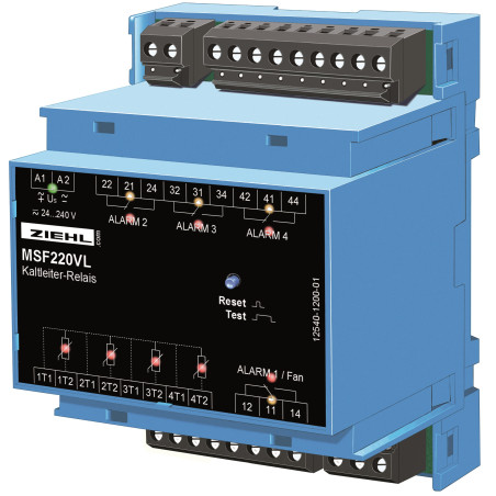 Egy intelligens vezérlés automatikusan meghosszabbítja a hűtőventilátor működési idejét, a transzformátor terhelésétől függően. Minden PTC-áramkör szakadás és rövidzárlat megfigyelése alatt áll. Ez csökkenti a téves riasztások valószínűségét. Az üzemi áram módban lévő relék megakadályozzák a kioldó jelet a tápfeszültség bekapcsolásakor.