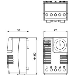 Elektroninis termostatas, skirtas valdyti šildymo, aušinimo įrenginius, filtrų ventiliatorius arba signalų siųstuvus. Aptinka aplinkos temperatūrą ir perjungia per išėjimo reles su perjungimo kontaktais. Pavyzdžiui, jei veikia šildymas, užsidega integruota LED lemputė.