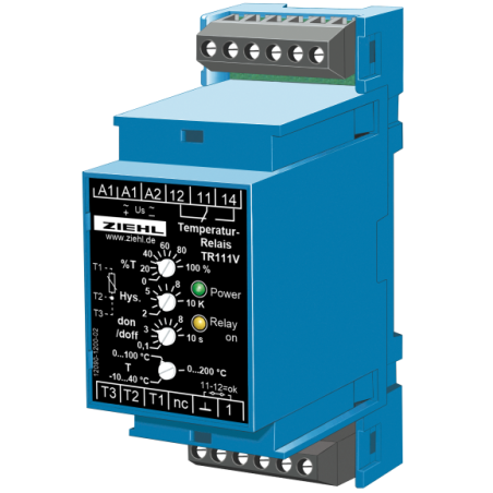 Temperatūros relės TR111V gali būti naudojamos kaip ribiniai jungikliai arba 2 taškų valdikliai su dideliu pakartojimo tikslumu. 3 matavimo diapazonai, reguliuojama histerezė ir perjungimo delsa bei pasirinkimas tarp relės veikimo ir uždaros srovės principo daro jį labai universaliu įrenginiu.