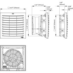 3 dydžio FPI filtro ventiliatorius (176 x 176 mm), skirtas oro kondicionavimui elektros gaubtuose ir korpusuose. Konfigūracija: FPI – oro srauto kryptis IN (standartinė versija: pūtimas). Optimalus korpuso oro kondicionavimas: Plus filtro ventiliatorius pučia vėsesnį lauko orą į elektros korpusą. Šiltesnis oras korpuso viduje išleidžiamas per išėjimo filtrą. Gautas oro srautas aušina elektros korpusą ir apsaugo komponentus nuo perkaitimo naudojant kontaktorių.