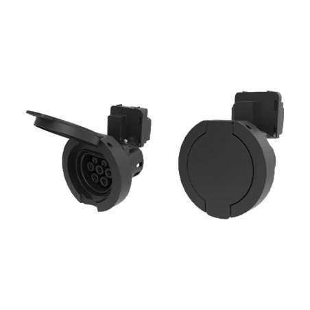 | Type 2 charging sockets for mounting on AC electric vehicle charging stations equipped with a charging lock. It protects against disconnection of the connector under load by blocking the plug during charging. The socket design ensures durability of over 10,000 connections. |