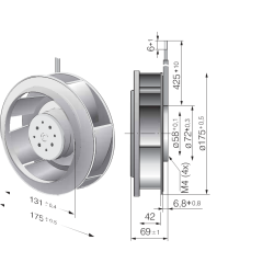 RER 175-42/18/2 TDMLP DC radialinis ventiliatorius 48V 46W