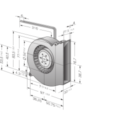 • Ventiliatoriaus tipas DC vieno įleidimo radialinis pūstuvas