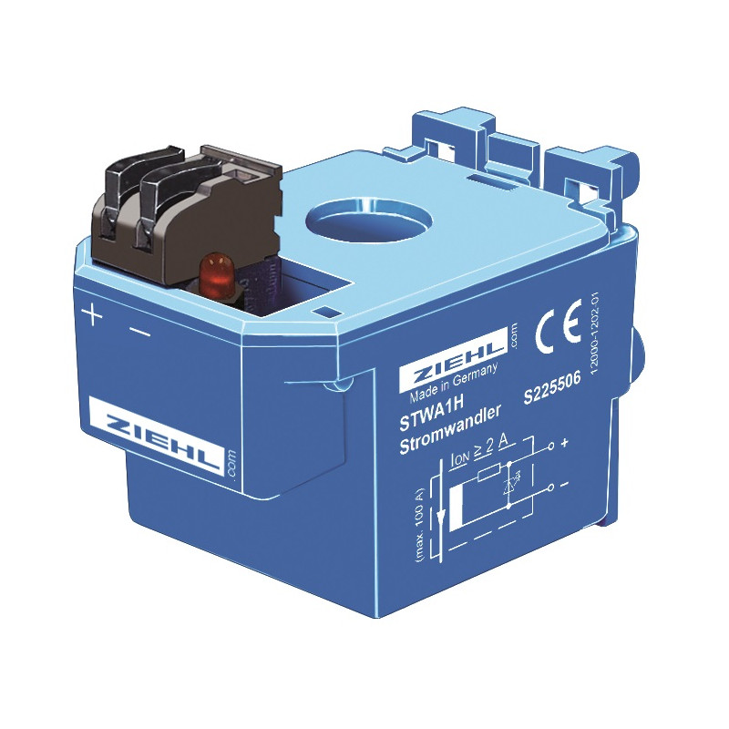 Srovės transformatorius STWA1H sukurtas taip, kad atitiktų srovės reles, skirtas atpažinti kintamosios srovės srovę ir valdyti STW tipo įrenginius. Virš programėlės. 2 A įmontuotas šviesos diodas užsidega ir rodo srovę. Prie gnybtų galima prijungti STW tipo srovės relę arba šviesos diodą.