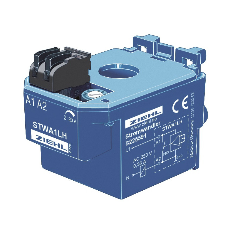 Elektroninis srovės transformatorius STWA1LH stebi kintamąsias 2...20 A sroves. Esant mažesnėms srovėms, stebimas laidas gali būti kelis kartus pervestas per transformatorių. Naudojant antrinėje transformatorių grandinėje (pvz., 100/5 A), galima stebėti didesnes sroves. STWA1LH tiesiogiai perjungia kintamąją įtampą iki 230 V / 0,35 A kintamos srovės.