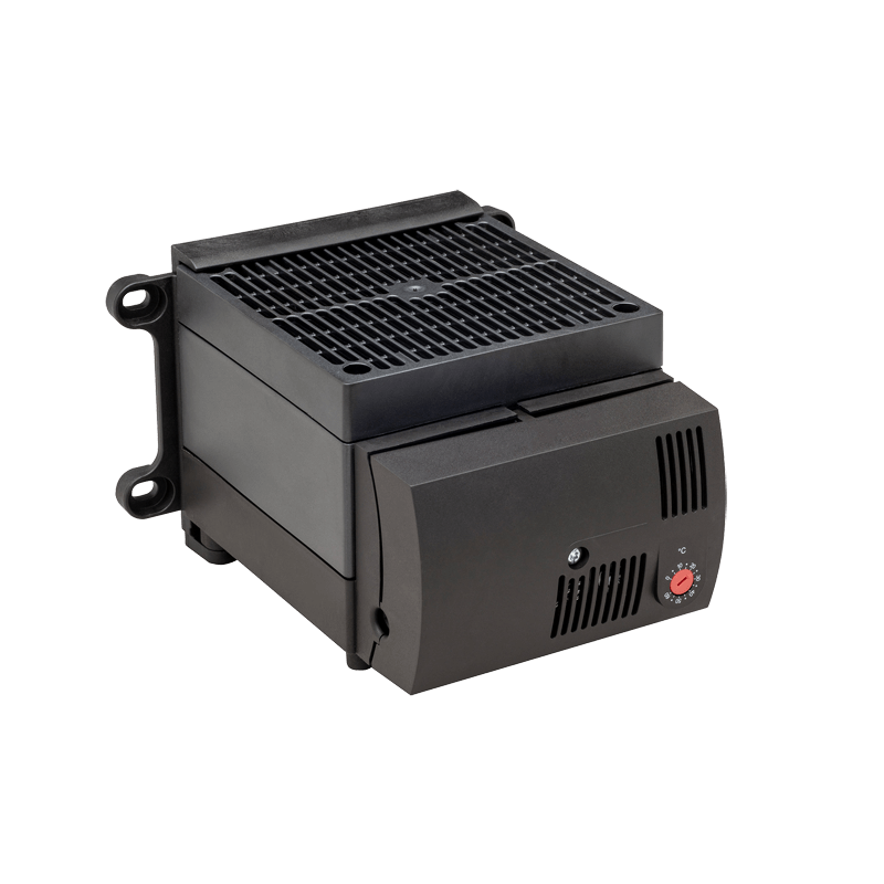 Dmuchawa grzewcza wysokiej wydajności przeznaczona jest do równomiernej regulacji temperatury w obudowach i szafach elektrycznych w celu ochrony przed szkodliwą kondensacją. Dostępne są wykonania z wbudowanym termostatem. Technologia grzewcza: PTC zapewniająca dynamiczną reakcję. Bezpieczne dla zastosowania dzięki dotykowej obudowie z tworzywa sztucznego.