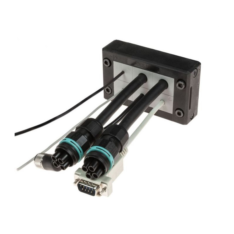 Dzielona rama DES 10 umożliwia prowadzenie kabli z głowicami i bez głowic o średnicach od 2 do 35 mm dzięki różnym dostępnym uchwytom na przepusty kablowe. Boczne zamknięcie ramy zapewnia odciążenie oraz ochronę przed kurzem i wodą.
