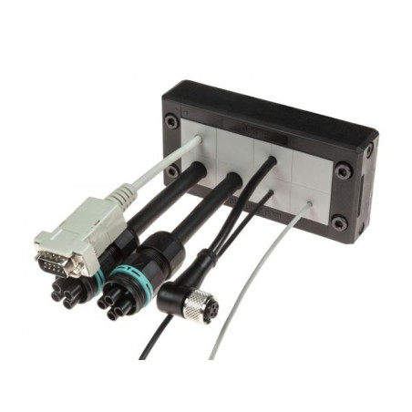 Dzielona rama DES 16 umożliwia prowadzenie kabli z wtyczkami lub bez o średnicy od 2 do 35 mm dzięki różnym dostępnym przepustom kablowym. Boczne zamknięcie ramy zapewnia odciążenie oraz ochronę przed kurzem i wodą.