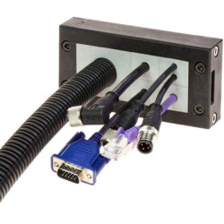 Rozdzielana rama DES 16M umożliwia przeprowadzenie do 32 kabli ze złączem lub bez, albo jednego lub dwóch kabli o średnicy do 35 mm przez ściany szafy elektrycznej lub maszyny. Małe i duże przepusty można dowolnie rozmieszczać wewnątrz ramy.