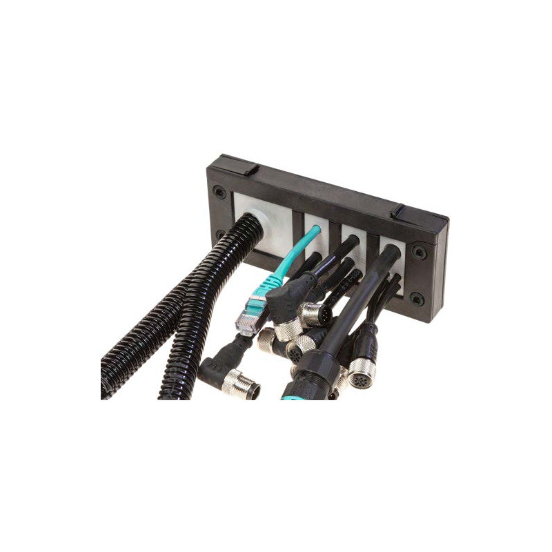 Rama DES 24 CLICK umożliwia umieszczenie do 40 kabli z wtyczkami i bez, o średnicach od 2 do 31 mm, dzięki różnym dostępnym przepustom kablowym.
