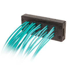 Dzielona rama DES 24 umożliwia prowadzenie kabli z wtyczkami lub bez o średnicy od 2 do 35 mm dzięki różnym dostępnym przepustom kablowym. Boczne zamknięcie ramy zapewnia odciążenie oraz ochronę przed kurzem i wodą.