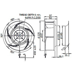 F225C2-092-D0710 Wentylator DC promieniowy 48V 28,8W