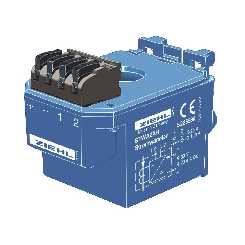 STWA2 AH este un traductor de curent pentru curenți AC 0...20/100 A. Cu STWA 2 AH, valoarea unui curent poate fi evaluată foarte economic și economisește spațiu. Semnalul de ieșire 4...20 mA poate fi evaluat sau afișat cu componente cu intrări analogice, de ex. PLC-uri sau afișaje digitale ZIEHL de tip MINIPAN ®.